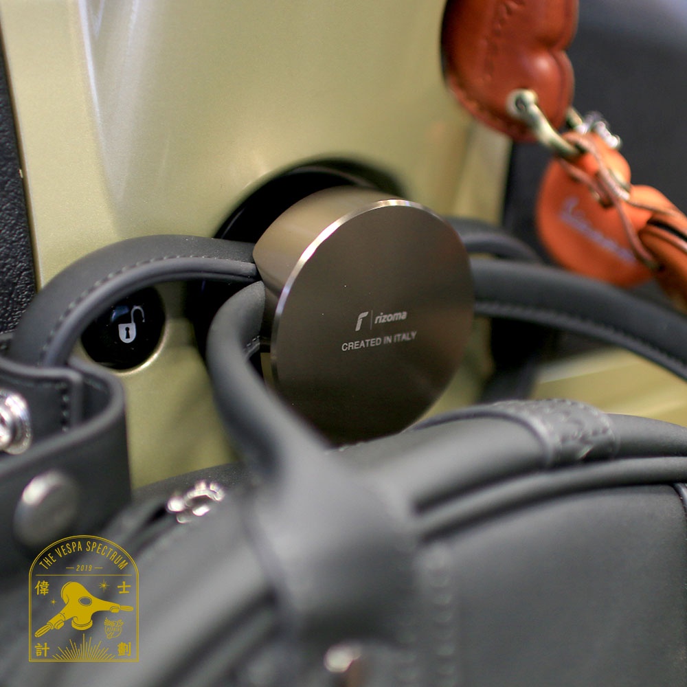 Rizoma為世界知名的二輪配件品牌,源自於義大利,在對於同屬義大利品牌的Vespa配件開發上投入很多,致力於打造出與 Vespa 同樣精緻優雅的配件,讓每一位車主都能找到最符合自己風格的配飾,取代原廠塑料掛鉤,全CNC切削,更耐用,質感表現上更上一層樓。