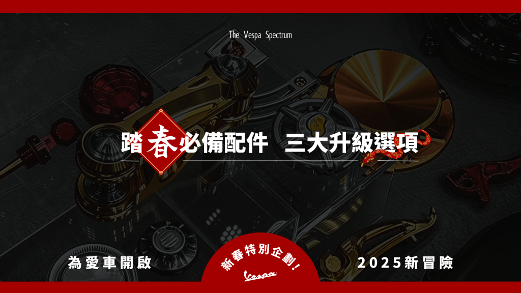 為了讓每位騎士都能在新春之際感受更多便利與駕駛樂趣,我們特別規劃了三大類過年必備選項,滿足您的不同需求。 從外觀到性能,從實用到個性化,我們將幫助您打造一臺專屬於自己的偉士牌,讓每一次騎行都成為值得珍藏的記憶。