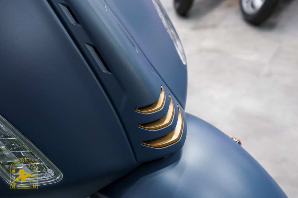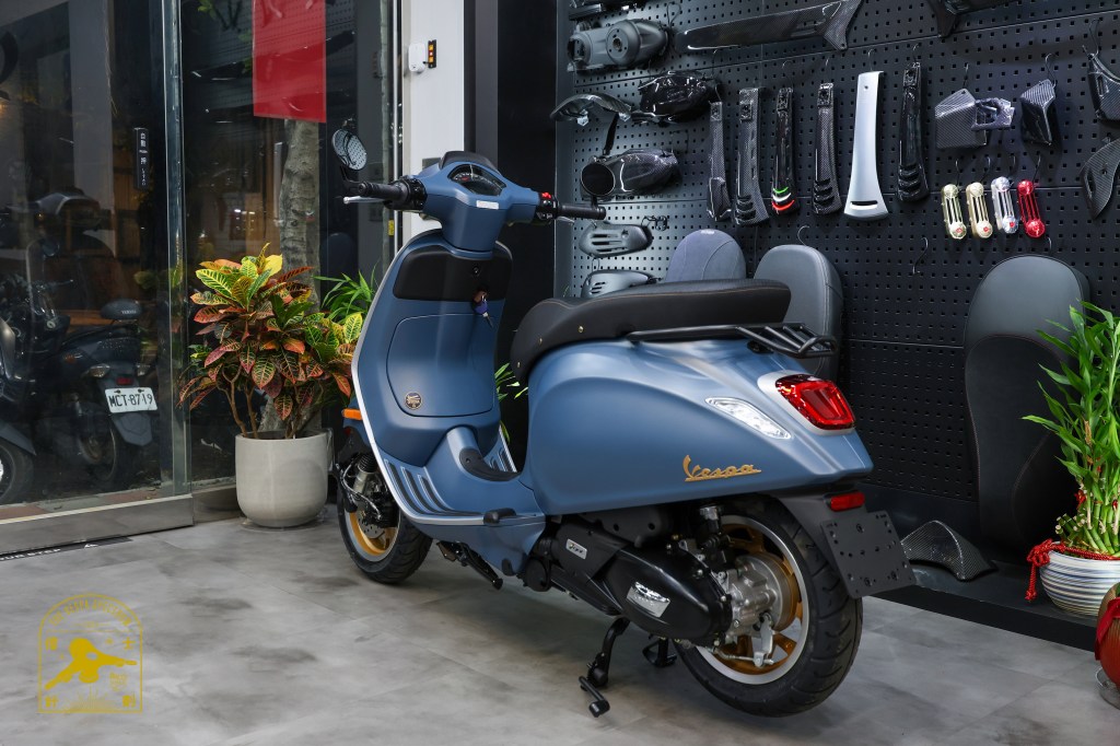 限量 50 台的Vespa Sprint Officina 8 特仕版,用消光霧藍+金色輪框直接把氣場拉滿,低調中又帶著高辨識度,每個設計都讓質感再往上推一層。這不只是台代步車,騎出去就像穿上限量潮牌,騎乘在路路上一定是最亮眼的焦點。