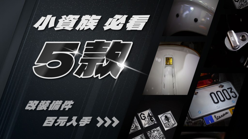 今天小編為小資族嚴選 5 款『百元』就能入手的 Vespa偉士牌改裝配件,不用千元就能讓愛車變的不同。跟著我們的腳步,一起來看看這些CP值超高的配件有哪些?
